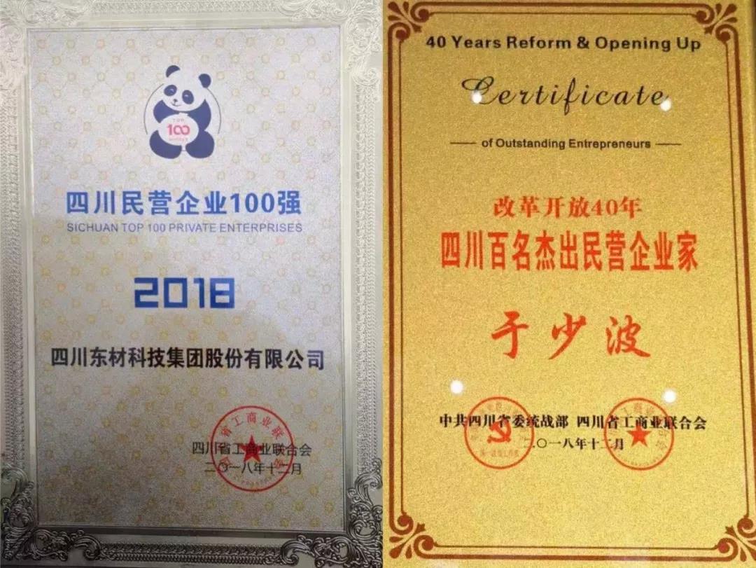 热烈祝贺东材科技党委书记、董事长于少波荣获“改革开放40年四川百名杰出民营企业家”光荣称号