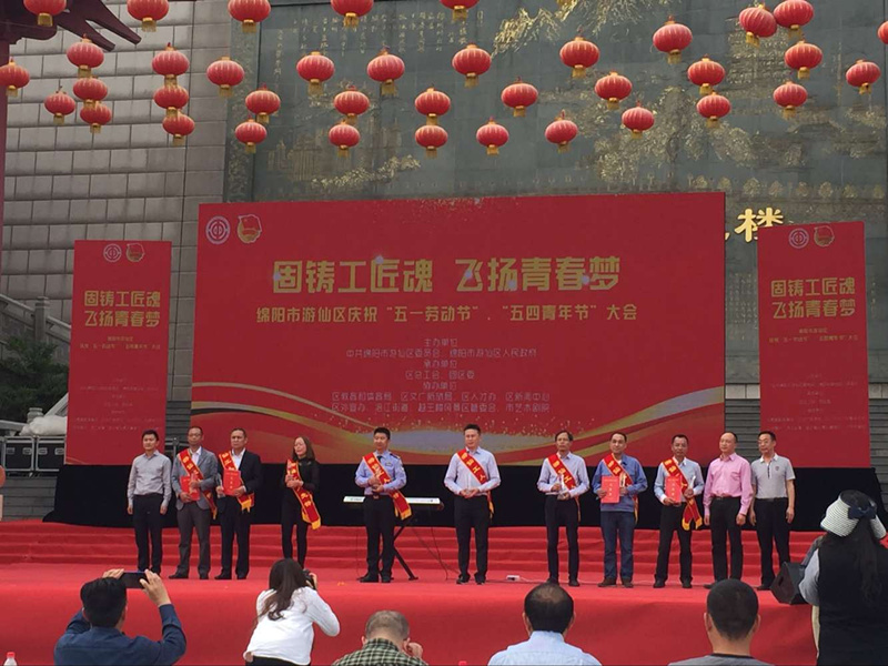 4月27日下午3点,绵阳市游仙区庆祝“五一劳动节”、“五四青年节”大会在越王楼广场举行。我公司新材料研发部部长黄杰荣获绵阳市游仙区2017年“工人先锋”称号,并在本次大会上受到表彰。 大会号召学习“固铸工匠魂”精神,在工作岗位上创新实干,做到无怨无悔;大会希望所有工人在越平凡的工作岗位上 越发不凡,...